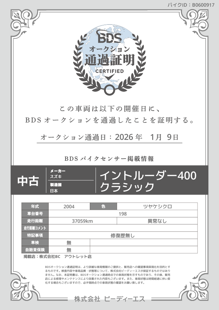 オークション通過証明プレビュー