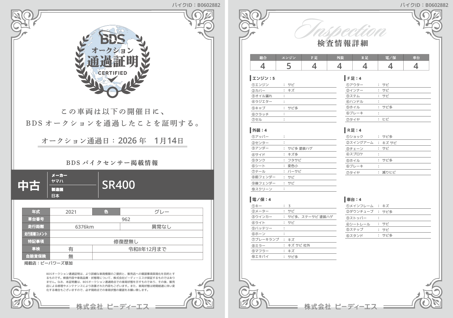 オークション通過証明プレビュー