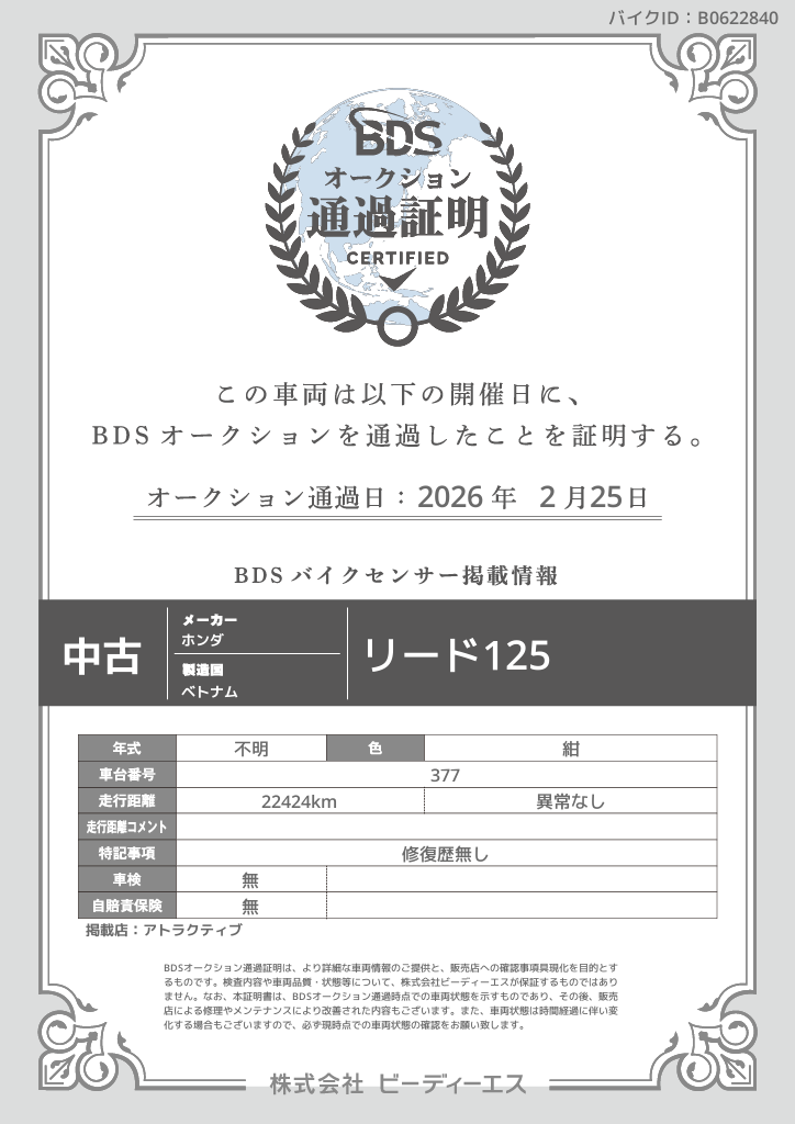オークション通過証明プレビュー