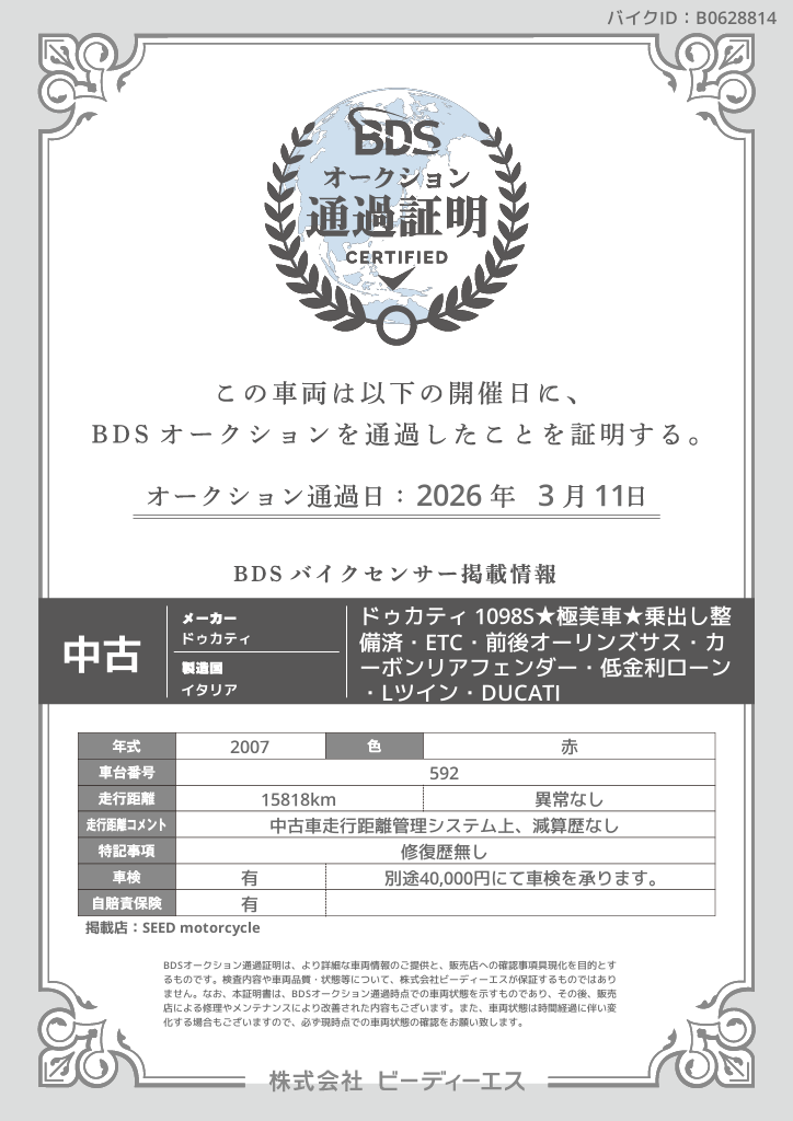 オークション通過証明プレビュー