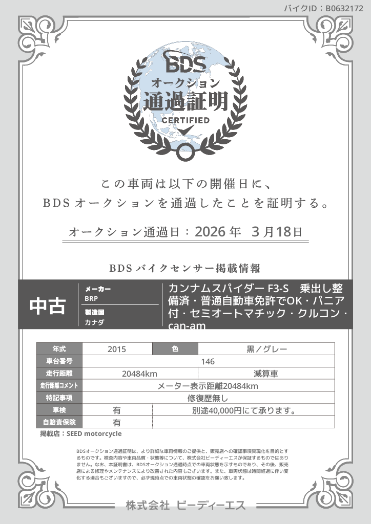オークション通過証明プレビュー
